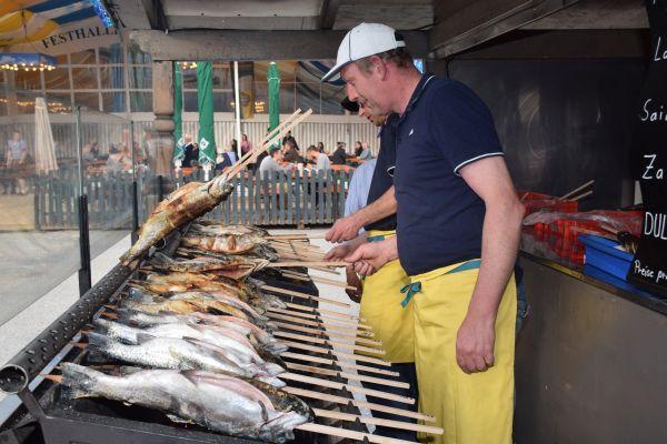 Es gibt leckeren Steckerlfisch ๐๐ฅ Backfisch, geräucherten Saibling und Brezn ๐ฅจ๐ฅจ๐ฅจ